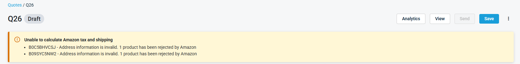 Quantity for Amazon items cannot be edited in client-facing quotes.